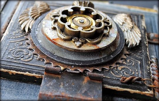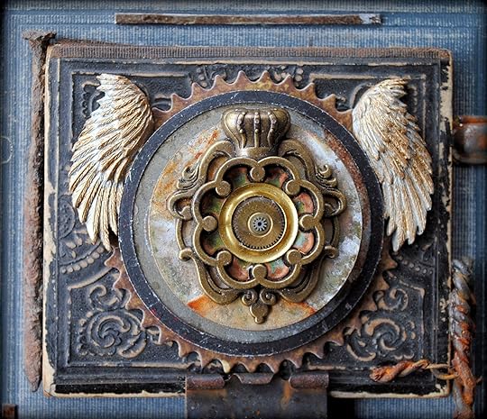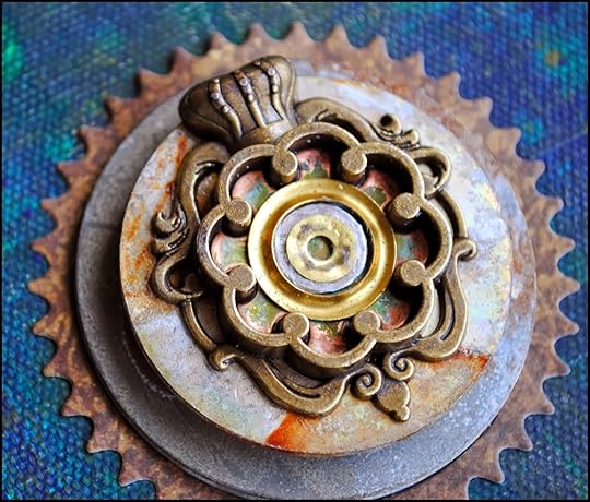 Much of my work includes found objects and finds from the hardware store. So when I can integrate commercial products with these treasures, I am definitely a happy camper. For this reason, I have been highly inspired by one of the new lines from Spellbinders -- A Gilded Life. Designed by Debbie Murray and Shea Fragoso, this line includes pendants, bezels, dies, texture plates and relics -- all with a distinctive, European flair.