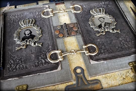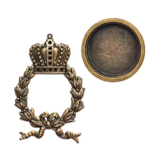 The inspiration behind my most recently completed piece, The Court of Common Pleas, was two identical, antique gold Regal Wreath pendants from A Gilded Life, one of the new line of products from Spellbinders.