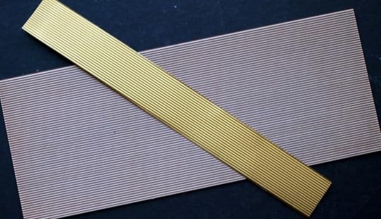 I then used Spellbinders Scratch Lines Texture Plate to create additional embellishment for the card. This plate deeply embossed a piece of foil so that I can add a bit of texture as well. I cut this strip into 3 pieces to place in different areas on the card.