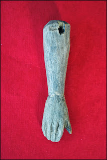 I was inspired to use this wooden hand as part of the project, as hands represent to me such things as giving and generosity -- not to mention creativity. My plan was to use these new dies to create a dimensional niche to display the hand as part of a mixed media artwork.