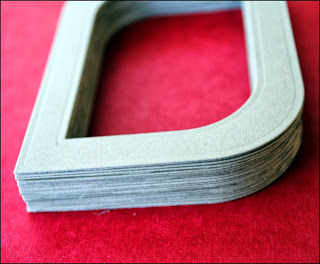 I started out by using dies #2 and #4 from the set to create a frame that was open in the middle. I taped the two dies together to make sure that all cuts were equal and used kraft color card stock as my paper.