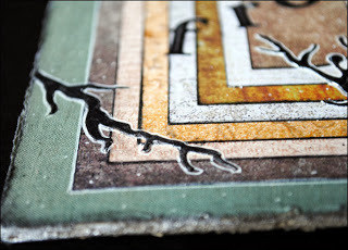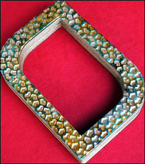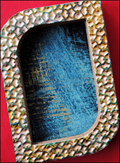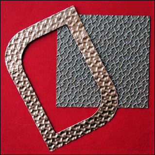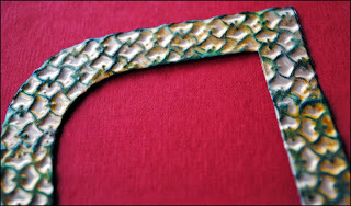 I wanted to use the copper frame as the front piece of my niche...but not before I added texture using Spellbinders Media Mixage Texture Plate Grate Works One.