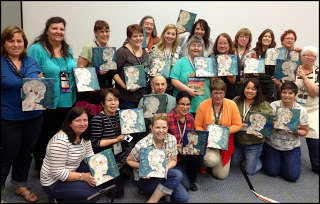 Some of the 51 people who attended my Mixed Media Magic Canvas class.A special thanks to Spellbinders for sponsoring the workshop and providing their expertise, assistance and product. Also extending thanks to the following companies who graciously donated supplies: Tsukineko, DecoArt, and Fun Stampers Journey.