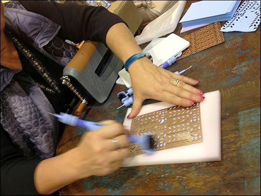 This tool performs a lot of functions useful for crafters and artists: piercing, folding, paper removal, inking, distressing, curling, and more. It is the solution for all those die users who have ever had trouble removing the small bits of paper that stick in their dies - regardless of the brand. And I have a few of my own, unique ideas for using this tool that I will share in the coming months. It is a must have.