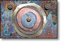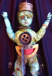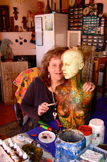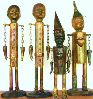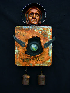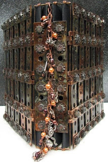 I love the 'quirk' that Leighanna brings to her art -- and I mean that as a big compliment. She describes herself as a thingmaker and I think that description fits perfectly. The things she creates are unique and special, and have personalities all their own. She is a wizard with creating patina on metal. Perhaps in another life she had been an alchemist, turning ordinary metal into treasured gold. That is exactly what she does with her art today.