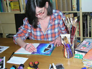 When I think of Anca and her art, words such as beauty, mystery, serenity, subtlety and strength come to mind. Her artwork is very distinctive and often blends abstract and figurative design - a combination that is very appealing to me. Her blog is entitled to live poetry, which is very apt given the visual poetry that seems to emanate from her creations. Many of the artists in the book were quite enthusiastic when they found out they would be sharing pages with Anca. She is a well loved artist.