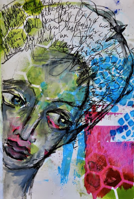 What can I say about the irrepressible Dina Wakley? She is one of a kind and a person with boundless energy, enthusiasm and humor. Oh....and talent too! Her journal pages and mixed media works are ahead of the curve and perfectly reflect the dynamo that she is. I met her in person this past year at Art Unraveled in Arizona and immediately became am even bigger fan. If you haven't already caught the fever, check out her book Art Journal Freedom