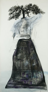 I cannot remember how Juana and I initially crossed paths online but I do remember being bowled over by her artwork when I first saw it. She has a special way of mixing media and styles, whether it be drawing, collage, and painting or abstract and figurative. I find her work to be quite introspective and extremely compelling. There is something extra special to me in her ability to create faces and bodies that both tell a story and elicit strong emotions.