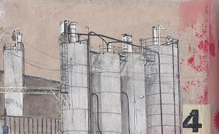 I can paint an abstract background in just one minute and then spend hours on an industrial scene with one felt-tip pen.