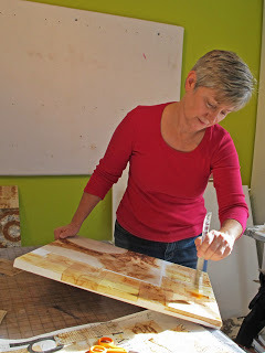 Jennifer creates the most wonderful surfaces in fascinating ways -- as can be seen in the pictures in this post and in those she contributed to the book. I was lucky enough to meet Jennifer at an art exhibition in NYC last year. It was great to connect with her in person and share some art time together. And I can say for sure that she is every bit as interesting as the surfaces she creates!