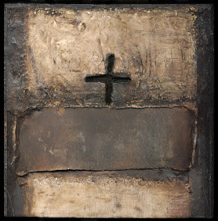 It embeds archetypal symbols and fragments of image and text in multiple layers of texture and meaning. It combines the humblest of materials, plaster, tar, wax and pigment, with the latest in technology to evoke the past and herald the future.