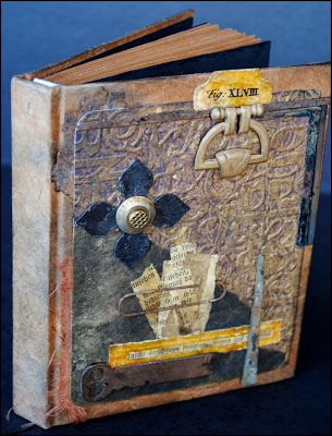 This started with a handmade book that I made several years ago and that was just sitting on a shelf, perhaps waiting for its turn to be embellished.
