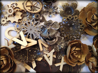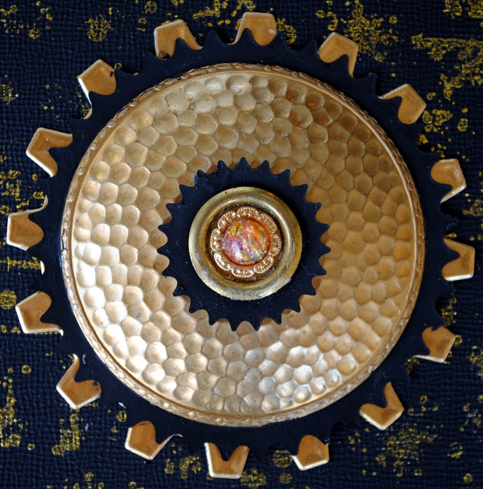 I dug inside my collection of metal bits and found 2 pieces to use, including a wonderful hammered, gold dome.