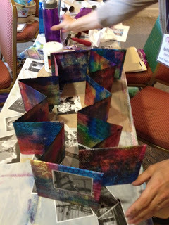 After we finished the covers, Anna took us through several different techniques to create the inside pages for our books. When they were completed, the idea was to cut them in half and glue them in on facing pages.