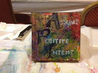 My experience at CREATE Mixed Media retreat last week in Somerset, NJ was just as I had expected: inspirational, exhilarating, and just a bit exhausting. As they say in sports, I left it all out on the field. Between Friday at 9am and Sunday at noon, I taught 4 workshops and participated in the Artist's Fair, selling my wares. There is nothing quite like spending that many hours focused on art with so many people who are just as passionate about it as I am.