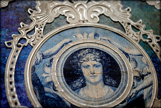 I created a ring using two dies from Spellbinders Circles One set which I planned to use to highlight the image of the face on the paper.