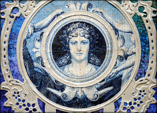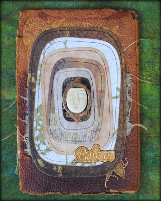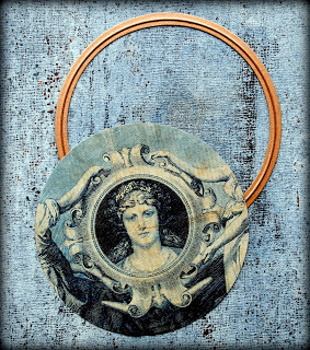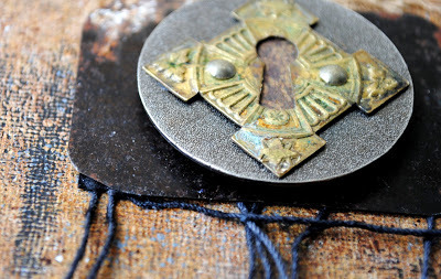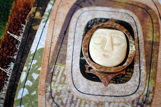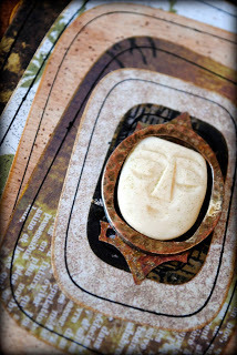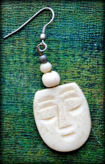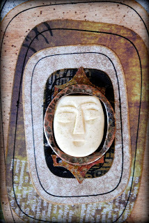 I also knew that I wanted to use the face from this earring, which I had picked up long ago at a NYC flea market. Although I love abstract art, I also love to include faces as focal images.