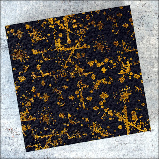 Using a clear stamp and metallic pigment ink, I stamped the surface and sides in a random, abstract pattern.