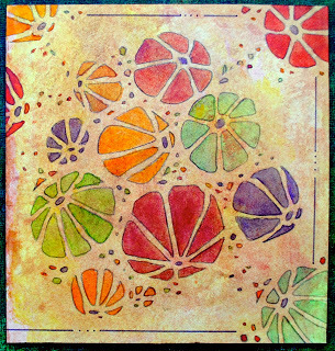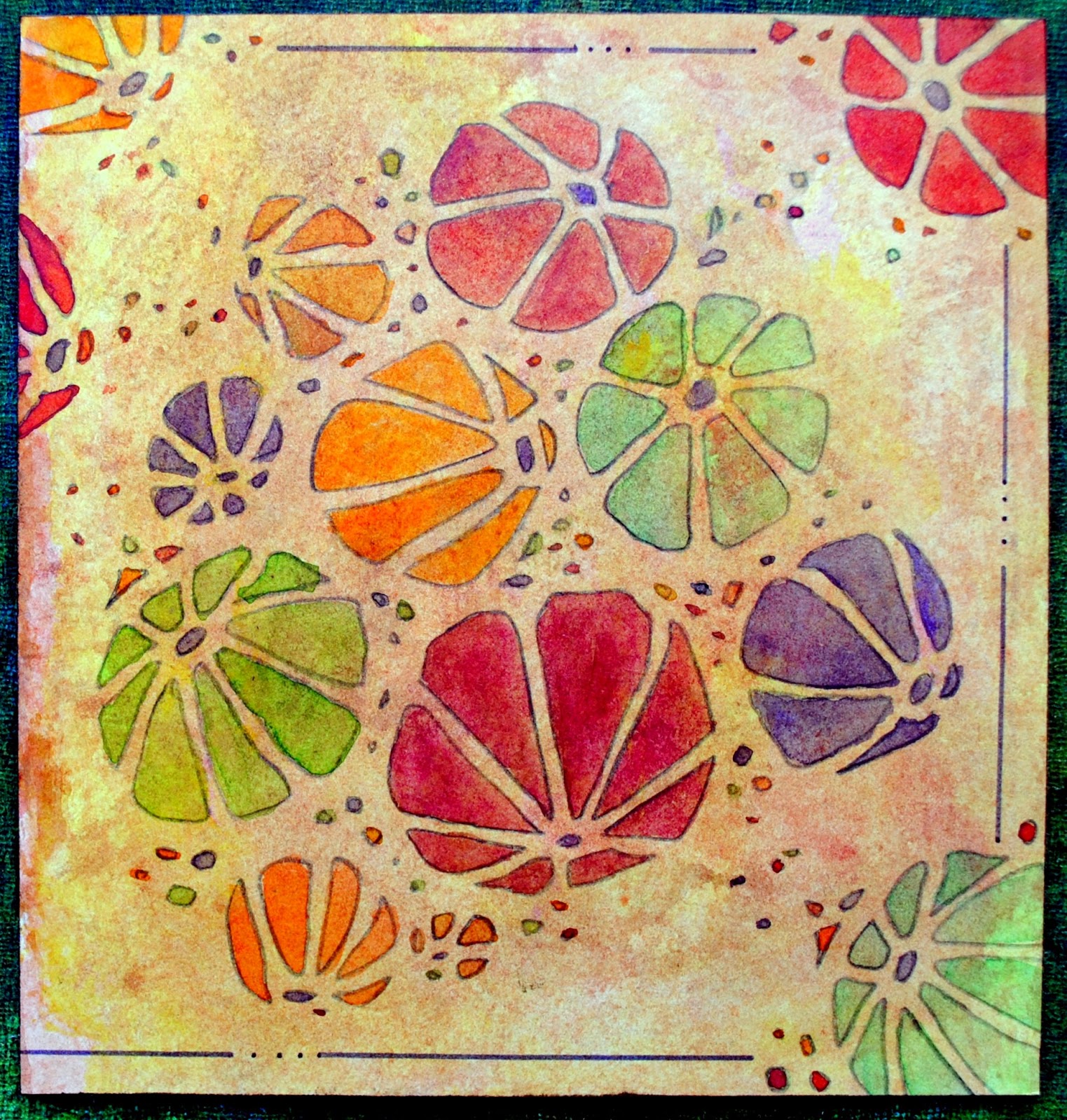 Excited to explore these new stencils, I decided to use all four stencils in four different pieces. I felt so inspired by the designs in these signature stencils that I chose to use materials that are anything but signature for me: pan pastels and watercolor paint. The color palette reflects the beauty of spring.