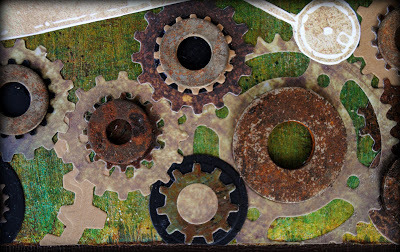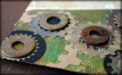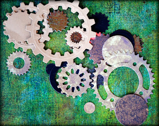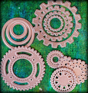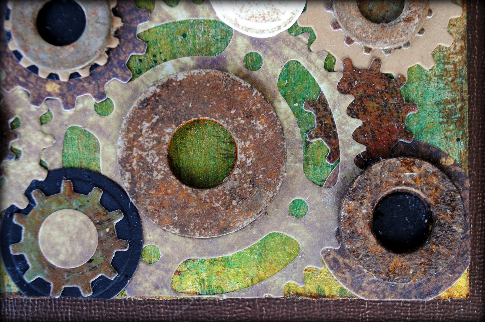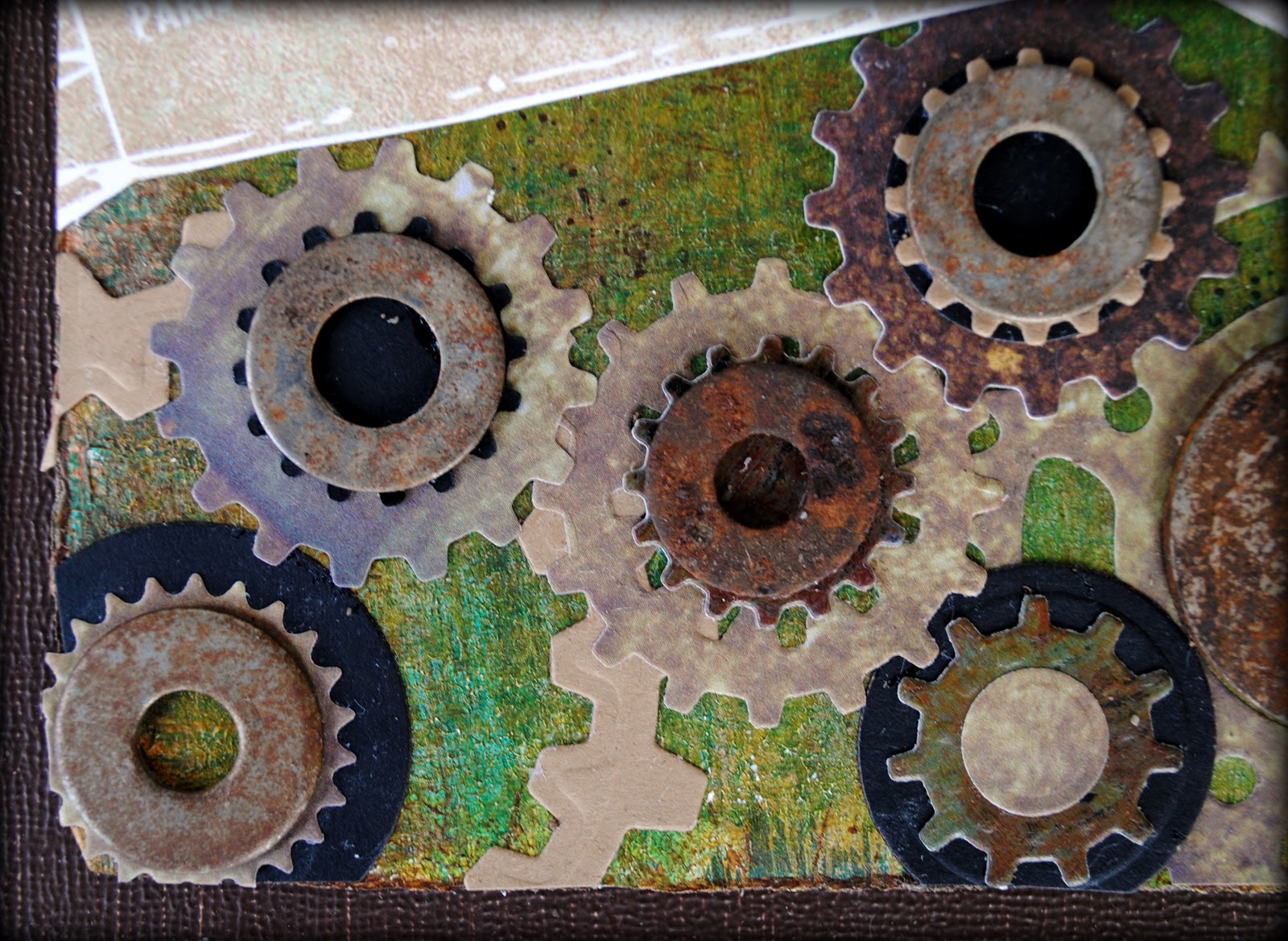 I then die cut circles, cogs and gears using multiple colors of card stock and patterned paper.
