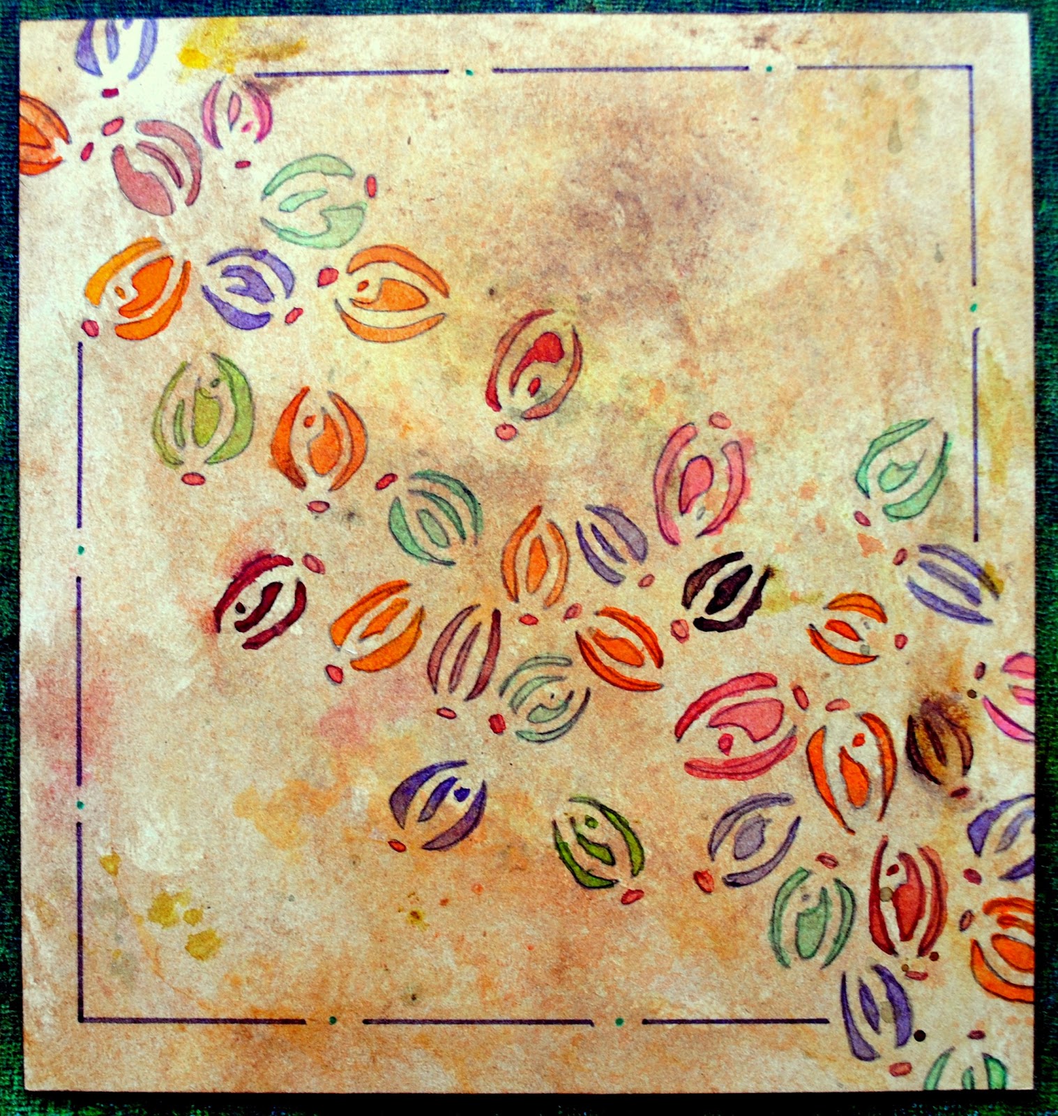 Sherri from Like Words Together who is the winner of the Playful Pods Series of stencils from Artistcellar and created by Chris Cozen.