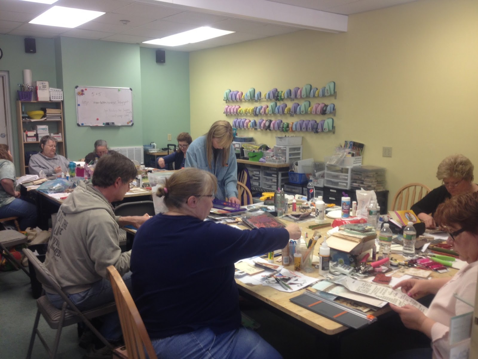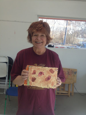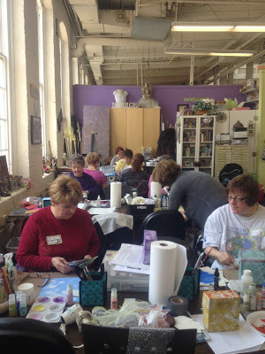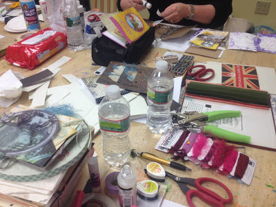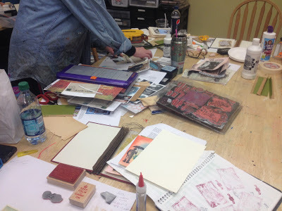 I taught my two-day, Mixed Media Memoire workshop and you know that good art is happening when the table gets messy.