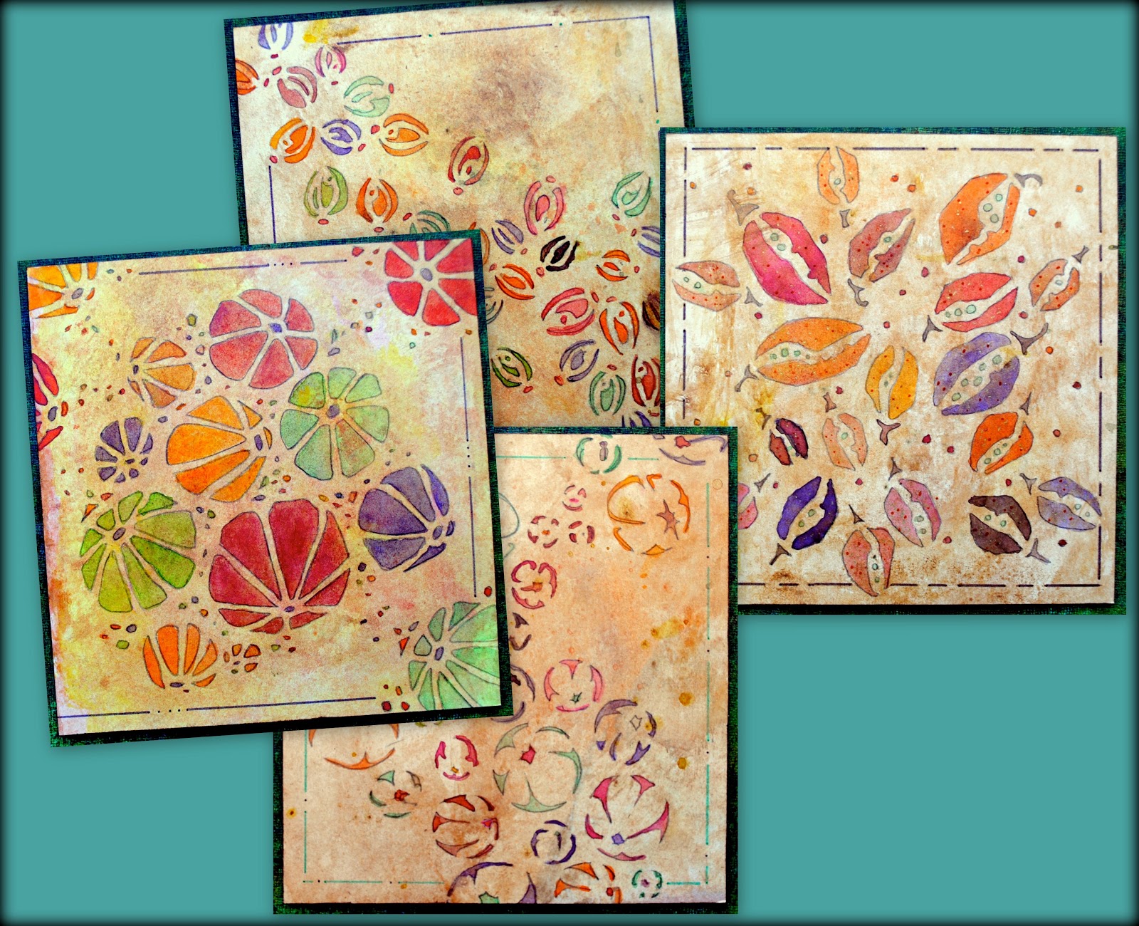 My four pieces created with Chris' Playful Pods stencils are now available for purchase in my Etsy shop.