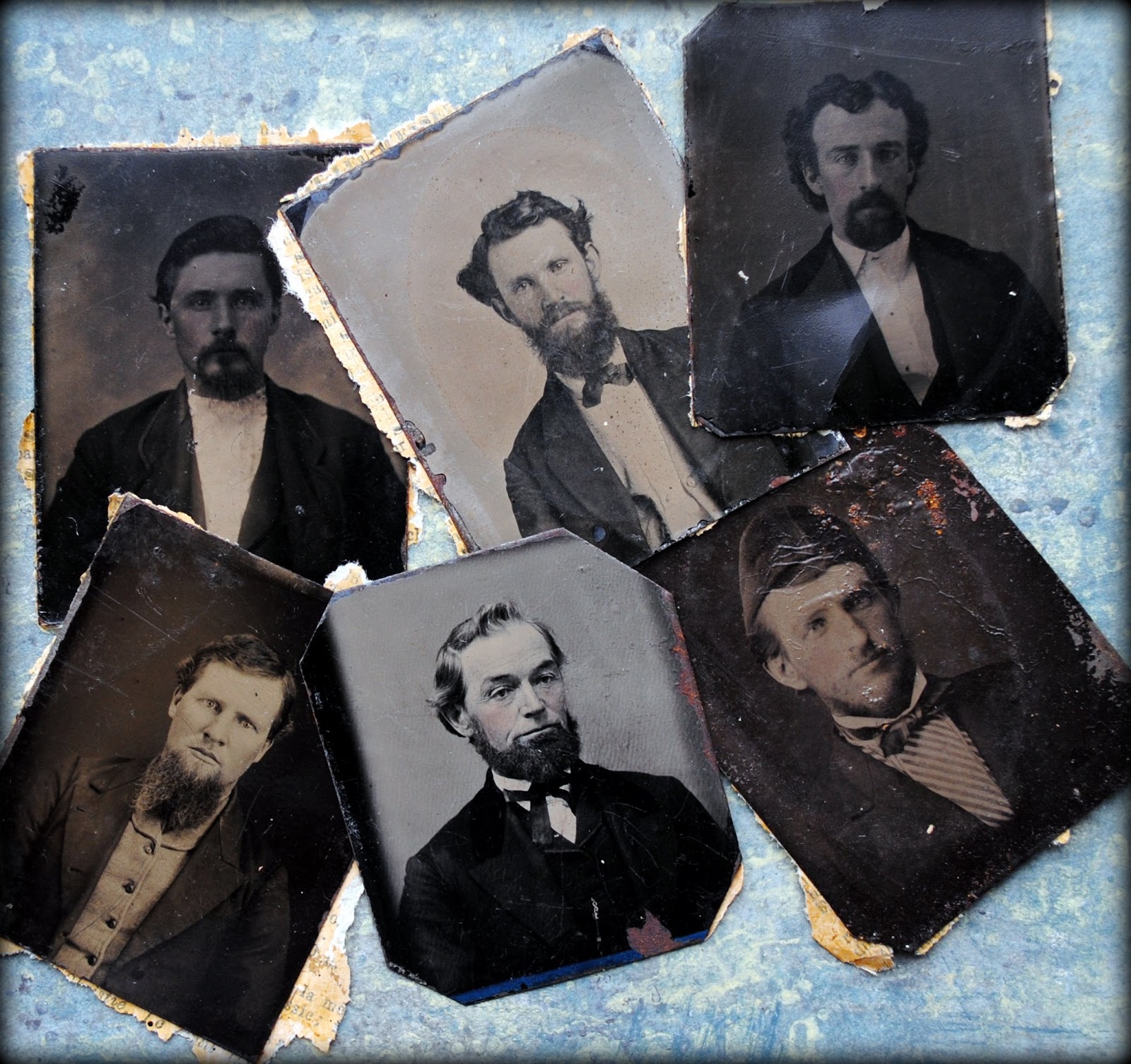 I dug into my very large stash of vintage tintypes and selected a group of guys. Looks like mustaches and beards were all the range in the 1890s.