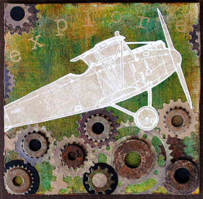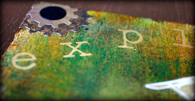 This year, Spellbinders has begun to Explore Beyond, encouraging artists to break through their own personal artistic limits and go beyond their usual comfort zone. In the same way, I am encouraging my crew of mixed media artists to also explore beyond and see how products designed primarily for card makers and scrapbookers can become part of their tool chest and used in a way that make them unique and all their own. To this end, today I am showcasing a piece called 'Explore' that reflects the theme of exploration.