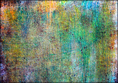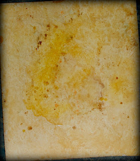 I started off with a 6.5 x 6.5 inch piece of hand painted paper that I grabbed from my stash. It was made on watercolor paper using gesso, acrylic paint and acrylic glazes. I mounted it to a piece of book board to make the piece more sturdy. The backside of the book board was painted and the edges were finished off with a gold leafing pen.
