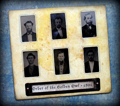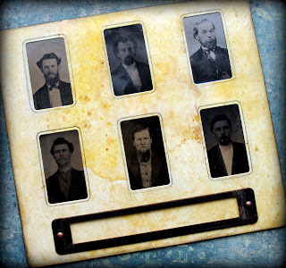 I adhered a tintype behind each window and backed the whole piece with book board cut to size.
