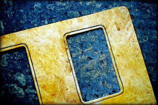 I added a finishing touch to the edges by adding some dye ink and cutting curves into each corner to mimic the curves of both the cut-out windows and the name plate.