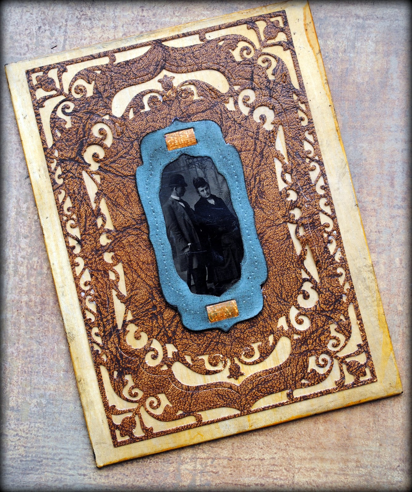 Other: tintype, book board, vintage book cloth, paper, card stock, acrylic paint, dye ink, adhesive, dauber applicator, paint brush, scissors, guillotine paper cutter