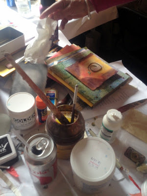 An assortment of mixed media supplies filled the tables and made artful vignettes...