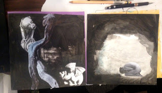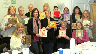 Each person in the workshop took their plain white pages and made them come alive with backgrounds in their own personal palette...