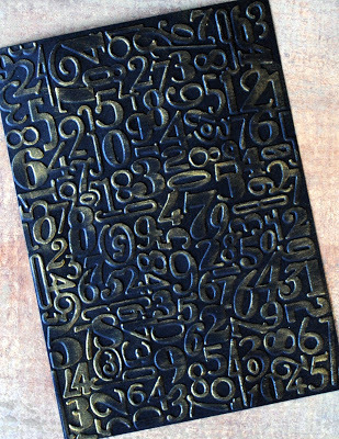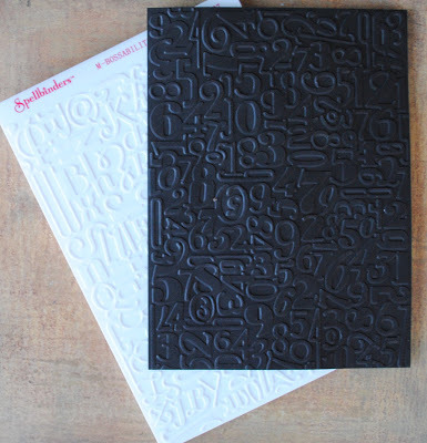 I am a sucker for anything printed with numbers or letters and Spellbinders has both in a new embossing folder. This was the inspiration for the project and I used the number side to deeply emboss several pieces of black card stock.
