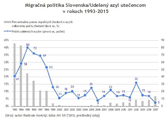 Ako vidíme aj na grafe, Slovensko od svojho vzniku nijako významne nezmenilo azylovú a migračnú politiku, ktorá je celkovo mimoriadne konzervatívna. Slovenská republika od svojho vzniku a do dnešného dňa dostala približne necelých 60-tisíc žiadostí o azyl a z nich vyhovela len niečo vyše jednému percentu, respektíve v absolútnom vyjadrení bol za 23 rokov na Slovensku udelený azyl len pre 650 utečencov (čo je o 150 menej než jednorazovo od Slovenska požadovala Európska komisia). Ročne to znamená akceptovanie žiadostí od utečencov v desiatkach (v absolútnom vyjadrení) a za celé sledované obdobie ani v jednom roku nepresiahol počet utečencov, ktorým bol pridelený azyl, hodnotu 100 utečencov/rok, pričom maximálny počet utečencov bol prijatý v roku 1995, a to 80. V percentuálnom vyjadrení sme sa dostali od úrovní pod 45 % úspešných žiadostí o azyl (na začiatku 90-tych rokov) až po úroveň pod 10 % úspešných žiadostí v posledných rokoch.