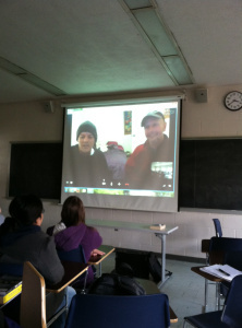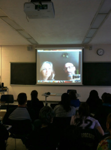 (Carla and Michael from the Walkabouts chat with my class via Skype from Seattle)