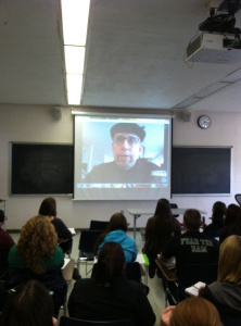 (Sub Pop Records founder Bruce Pavitt chats with my class via Skype.)