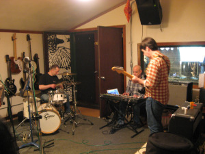 (Scott Schickler [Swallow], drums; Glenn Slater [Walkabouts], keyboards; and Leighton jam at Carla Torgerson’s [Walkabouts] house, April 2012)