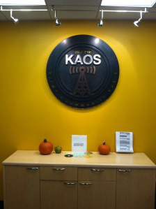 (The main reception area at KAOS radio, at Olympia’s Evergreen State College.)