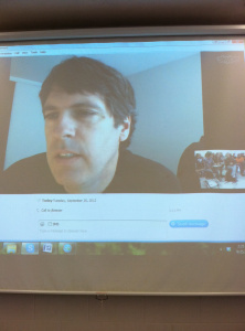 (Leighton Beezer chats with my students from Seattle via Skype.)