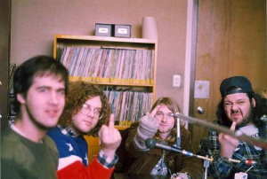 (Green River…I figured I’d pick a shot where Bruce isn’t cut off…from left: Bruce Fairweather (Love Battery); Jeff Ament (Pearl Jam); Mark Arm (Mudhoney); Alex Shumway (Spluii Numa); Not pictured: Stone Gossard (PJ); Steve Turner (Mudhoney.)