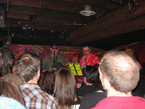 (Rob [in red] fronts the Squirrels for a packed house at the Sunset in Seattle, April 28, 2012)