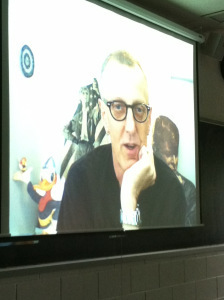 (Rob Morgan talks to my Delaware Valley College students from Seattle. David Bowie sits to his left, Donald Duck to his right.)