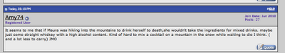 Some people have pointed to the alcohol that Maura bought the day she disappeared as evidence that she intended to drink herself to death. Sometimes, we don't see the forest for the trees, as this Websleuth points out in the screen cap above (click to enlarge).