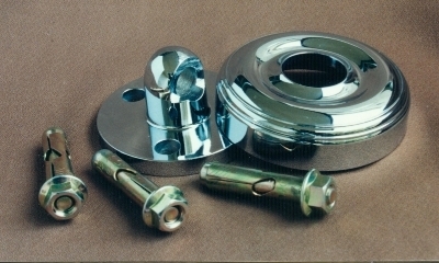 Here's the smaller version. The base plate is anchored to the ground using dynabolts, when the cap is put over the top and a padlock or cable lock put through the eyelet, you can't get at the bolts.