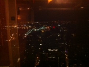 We took the elevator to the 33rd floor got out and ran into rooms, you had to be inside a room to see a view of the memorial, again I was ready to quit. He found another hidden stairway and we took it a few floors up and found another elevator, we took that to the 55th floor. When we got out we knew we were out-of-place, the whole floor was marble and really nice, when we looked at the rooms they said this on the door: “Mayor’s Suite and Governor’s suite and President’s suite” we quickly realized we were completely out-of-place (it was good we weren’t tackled by security). It was pointless still because the view from the site was still inside the rooms and we weren’t going to knock on any doors.