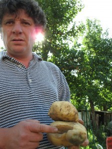 Robert and Jeem messing around on the day of Robert’s potato harvest. They spent a lot of time taking pictures of the weird ones.