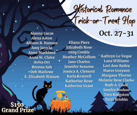 It’s begun!! The 2023 Historical Trick-or-Treat Hop is underway! So many authors – so many treats – and a great grand prize, too.